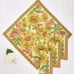 Serenade your table with the sublime, smile-inducing power of sunflowers! Crafted on the finest Indian cotton by expert craftspeople.