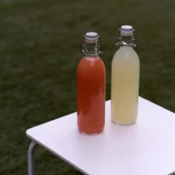 - Glass bottle with a swing-top stopper