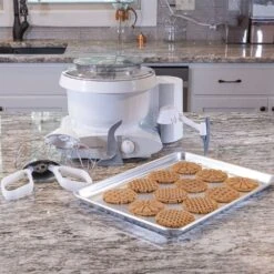 Along with the Bosch Universal Plus Mixer, you’ll also get the Cookie Package which includes a bowl scraper that’ll scrape & incorporate ingredients that build up on the sides of the bowl and a set of cookie paddles that are made for creaming medium to thick cookie doughs before adding mix-ins, as well as a Nordic Ware 18″ x 13″ Baker’s Half Sheet Pan that’s made of natural professional-grade aluminum that’s perfect for baking a batch of homemade cookies and other treats. Never struggle again with mixing your favorite baked goods & recipes with the Bosch Universal Plus Mixer!