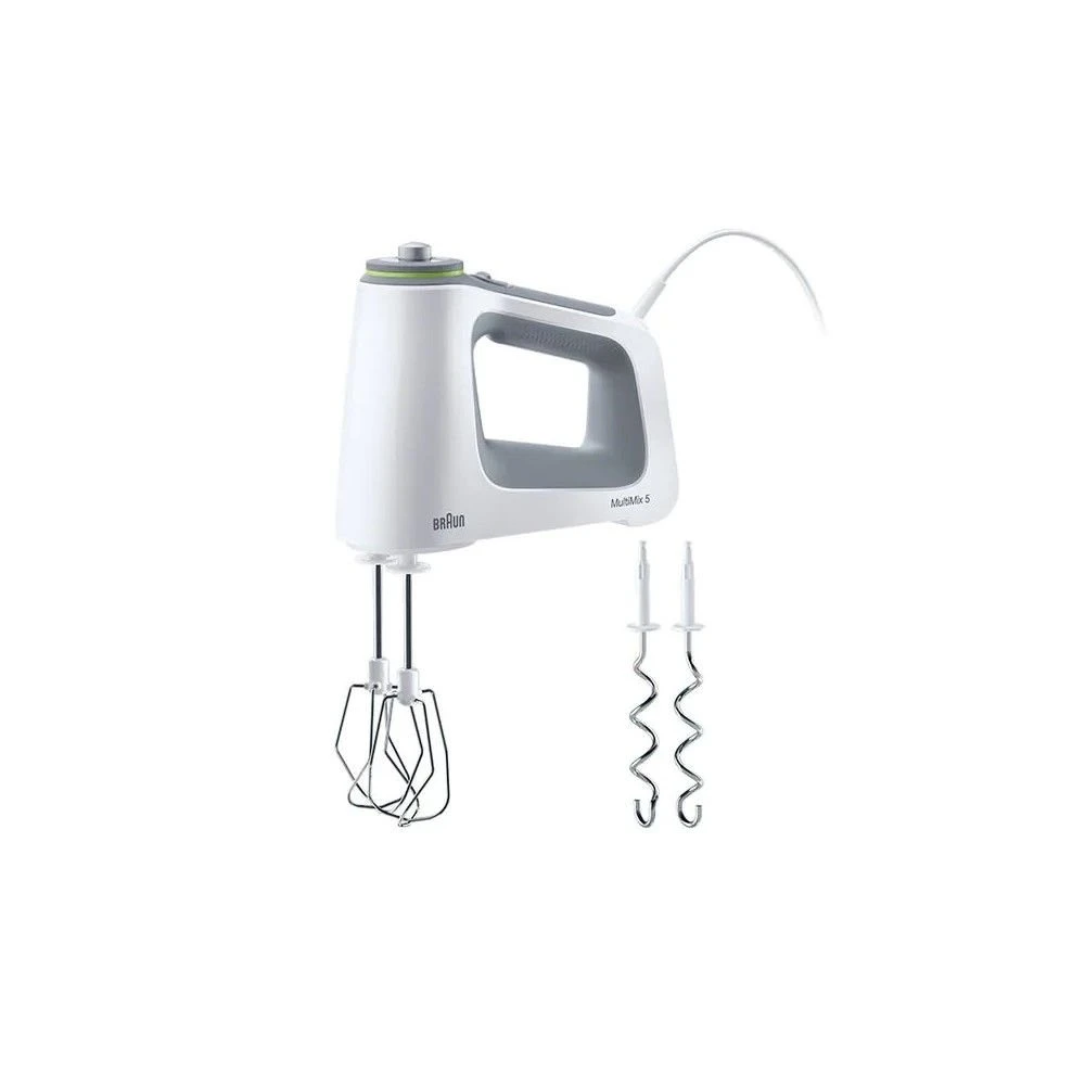 Easily maneuver your way through mixing duties with the Braun MultiMix Hand Mixer in White! Featuring a high-powered 350 Watt motor with included MultiWhisks and kneading hooks, this hand mixer is the perfect companion for your baking or food prep duties. With 9 speed settings and a one-touch VarioControl speed dial, this mixer will adapt to the needs of your recipe in seconds with just a rotation of your thumb. To ensure comfortable operation, Braun’s ergonomic SmartMix Technology redistributes the weight of the mixer out of your hands and into the bowl, while the soft grip handle maximizes comfort – letting you yield exceptional results with minimal effort. The fully-sealed design keeps the motor clean and limits the possibility of food getting stuck inside, while the ComfortClick & EasyClick functions allow the attachments to be added & removed with ease. Adorned with a sleek white finish and covered by a 3-year warranty, the Braun MultiMix Hand Mixer in White will be an efficient addition to your kitchen that will make a variety of food prep tasks easier!Â