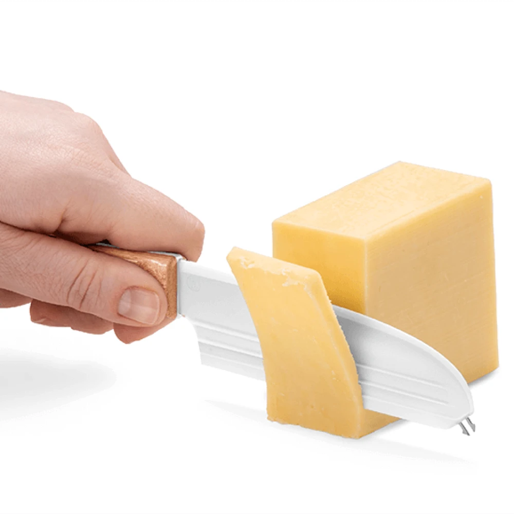 - Nonstick nylon blade easily slices through hard and soft cheeses