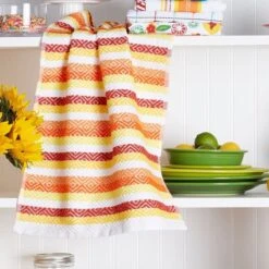 Whether you put this towel to work drying dishes or just use it to accent your kitchen decor, the Fiesta® 16″ x 28″ Kitchen Towel (Diamonte Warm) brings fresh stripes of color to your kitchen! Made from 100% cotton with a diamond pattern background, this non-abrasive towel is safe to use on just about any surface and it is soft and absorbent making it perfect for cleaning up spills, drying dishes, or just wiping your hands. Machine washable for easy cleanup, the Fiesta® 16″ x 28″ Kitchen Towel (Diamonte Warm) is a perfect accent for Fiesta®-inspired kitchens featuring reds, oranges, and yellows.