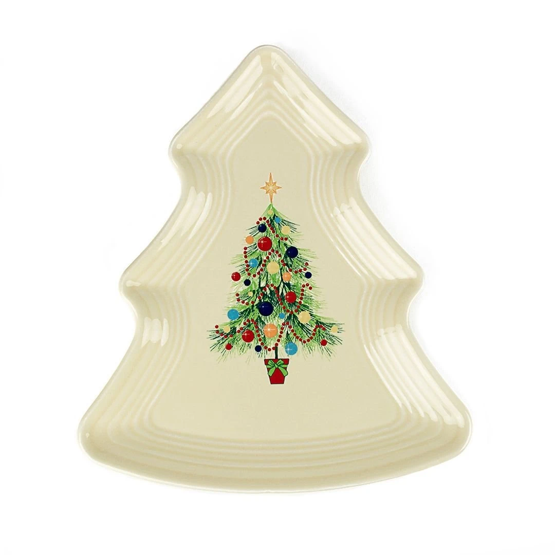 Set out holiday cookies, finger sandwiches, or homemade Christmas candy at your holiday party on Fiesta®’s Christmas Tree Plate! Fiesta®’s cheerful Christmas tree pops in its array of colors on this Ivory tree-shaped plate. With elements of the concentric ring detailing you love about your other Fiesta®, this tree plate will blend in nicely with the rest of your Christmas Tree collection. And with so many pretty signature Fiesta® colors in the design, it will be a festive complement to any of your other dinnerware and serveware as well.