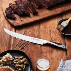If you take pride in your cutlery collection almost as much as your title of family grillmaster, the Hammer Stahl 10″ Scimitar was forged just for you. Designed to mimic its namesake sword, this kitchen knife features a curved blade designed specifically to slice large cuts of meat. In particular, the scimitar was made for BBQ and smoker recipes, gliding through racks of ribs and larger cuts such as pork shoulder with equal ease. With a pointed tip, this large blade can still be used for precise cuts, its perfect balance making it easy to control. The pakkawood handle is not only eye-catching but comfortable, making this large blade easy for anyone to use. Complete your cutlery collection today with the 10″ Scimitar from Hammer Stahl.