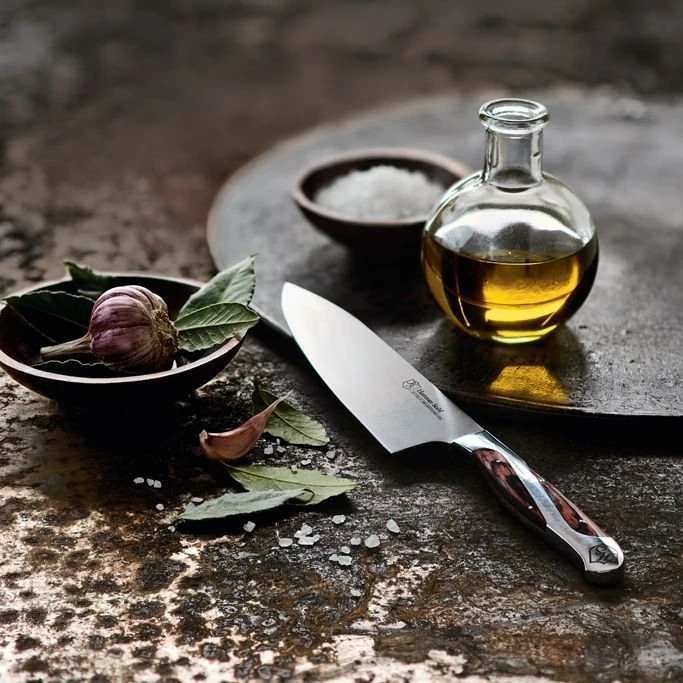 A good chef’s knife is the cornerstone of any great cutlery collection, and the Hammer Stahl 6” Chef’s Knife is a great choice for any home chef. This chef’s knife is forged from German steel and features a quad-tang handle for superior balance and easy handling. The handle is made of a combination of stainless steel and Pakkawood which gives it a unique design that sets it apart from all other knives in your collection. To make the chef’s knife more efficient, this blade features a sloped bolster and the blade extends through the heel. Whether you are preparing piles of vegetables or slicing up your favorite meat, this 6” Chef’s Knife from Hammer Stahl is a must-have for your cutlery collection, get yours today!
