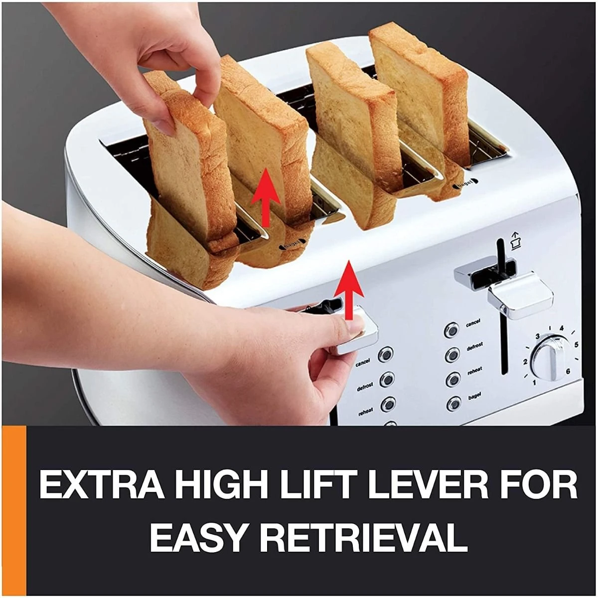 - 4 slice toaster with extra-large self-centering 1.5-inch x 5.75-inch sized slots