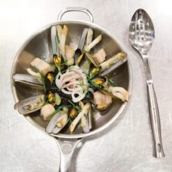 - Tri-ply stainless steel saucier pan capacity – 3.5 quarts
