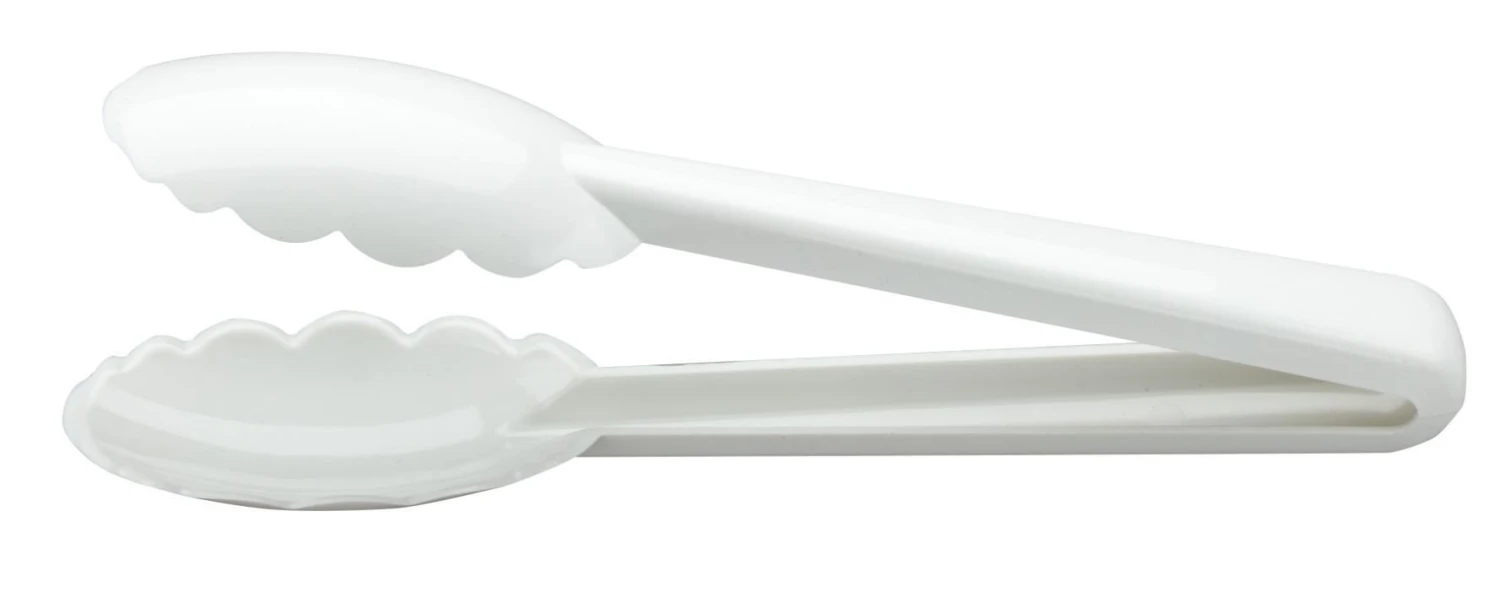 On your buffet or in your kitchen, you want tongs that can stand up to the task without damaging your food, ruining your cookware, melting if you leave them in a pan or too close to a burner, or trapping germs from many hands. Meet Mercer Culinary Hell’s Tools High-Heat 9.5” Utility Tongs in White! This commercial-grade pair of tongs is made from a specially formulated glass-reinforced nylon so they can stand up to the heat. Beveled edges create greater control when picking up food while the seamless design and one-piece construction create better sanitation. Intended for either home or commercial use, these heavy-duty tongs are NSF-certified for safety, performance, and quality; and the many color choices make these tongs ideal for a designated use program or HACCP plan. These tongs are tough enough to survive in Hell’s own kitchen—you’ll definitely want a pair in yours!