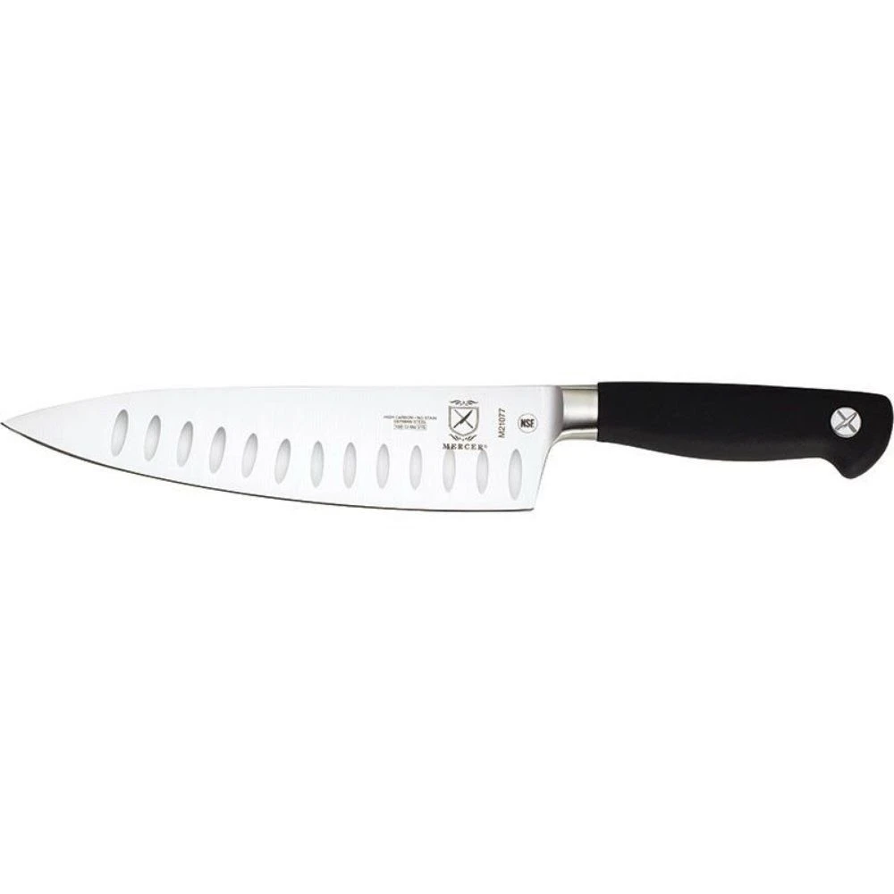 If you need a go-to knife in your kitchen, look no farther than the Mercer Culinary Genesis 8” Short Bolster Granton Edge Chef’s Knife. A chef’s knife is an integral part of any cutlery collection, perfect for completing any number of tasks, from chopping up ingredients to stripping herbs. The Mercer Genesis chef’s knife is made of high-carbon stainless steel that resists rusting, corrosion, and discoloration. The blade is taper-ground to keep its edge for longer than traditional blades. The Mercer Genesis blades all feature a tang for perfect balance and easier cutting. The Granton edge promotes airflow to ensure food doesn’t stick to the blade, this makes for more efficient chopping and slicing! The shortened bolster allows for use of the full blade. Don’t settle for average blades, get the precision forged 8” Chef’s Knife from Mercer today!