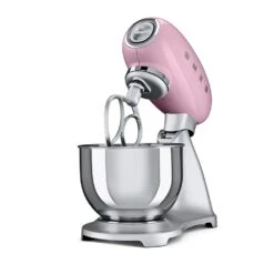 Acknowledged by many to be a design icon, the SMEG Retro Style Stand Mixer Pink is another experience in awarding winning industrial design inspired by the glamour and rounded forms of the 1950s. This vibrantly finished, recently updated mixer is held to high standards of quality, with a die-cast aluminum body and zinc-alloy base that are built to withstand the test of time. With gripping feet and a safety lock option, you can keep your mixer working hands-free, giving you time to answer a call, or simply add more ingredients into your bowl. Each Stand mixer with a 600-watt power rating includes many accessories, including a redesigned wire whisk, dough hook, and flat beater, as well as the traditional pouring shield. Additionally, this updated mixer features a thicker bowl and new material for the base. SMEG Retro Style Stand Mixer Pink offers the very best interpretations of traditional recipes and more sophisticated chef quality dishes.