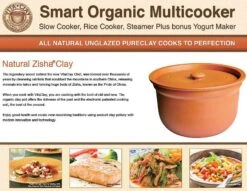 This VitaClay® Smart Organic Multi-Cooker is a super-tasking miracle of traditional clay cooking combined with computerized electrical technology. You may be one of the many people who are so busy that healthy and delicious foods are hard to place on the table due to the lack of time and efficient cooking tools. This VitaClay® Chef Multi-Cooker will cook up to four times faster than traditional slow cookers. You do not have to stand over a hot stove, or watch the oven by using this multi-cooker. A few simple steps of preparation followed by programming of the machine, then you are set to go, and be about your daily business. This VitaClay® Chef Multi-Cooker has three basic functions – slow cooking features, rice cooker options, and yogurt maker settings all in one. The Zisa clay construction naturally maximizes flavors with improved textures that was once limited to oven-style cooking. In about 45 minutes you can prepare nutritious one-pot meals and side dishes. Or program cooking times up to 5 hours with start delay and warming features which allows you to put in your work day, and then return home to a fully-cooked healthy meal. The VitaClay® Smart Organic Multi-Cooker holds your keys to providing increased nutrition and better-tasting final foods for your loved ones that will save you time and money.